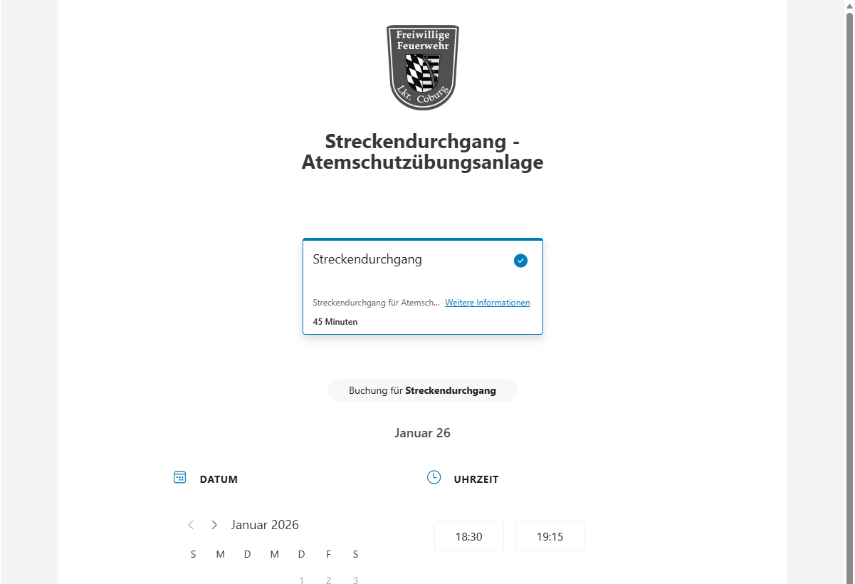 Anmeldung Streckendurchgang - Atemschutzübungsanlage |